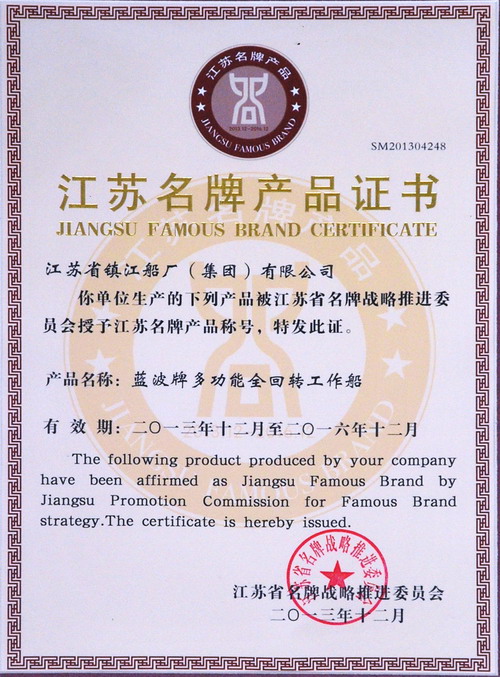 江蘇省名牌產(chǎn)品證書(shū)