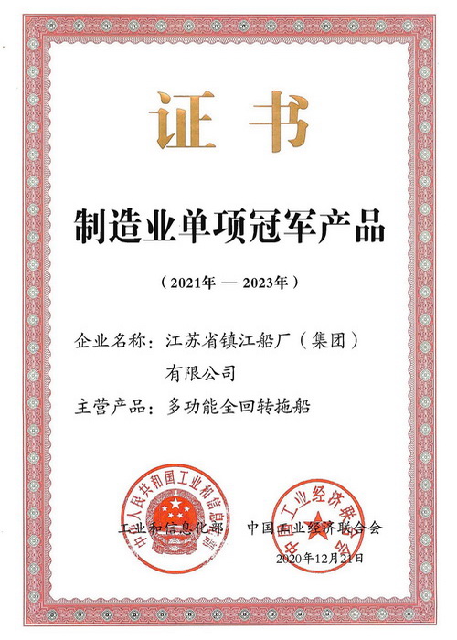 中國制造業(yè)單項冠軍產(chǎn)品證書