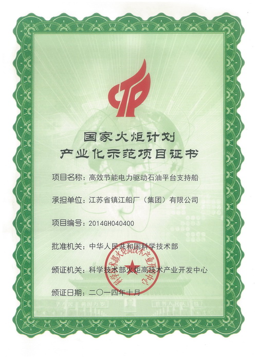 國家火炬計劃證書(2014)