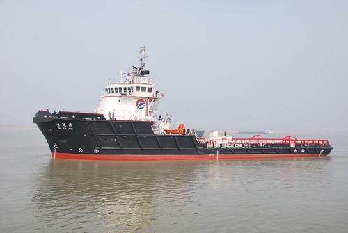On March 22nd 2013, the 10,000kw multifunctional vessel named Xin Yunyang was successfully delivered to Nanjing SUMEC Shipping Co. Ltd. Equipped with DP2 system and automation; it can meet the requirement of UMS in unrestricted area and reaches an advanced level among the same kind of products in China. |
