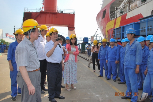 On 30th July 2013, Zhenjiang municipal party secretary Yang Xingshi, together with the secretary general of Standing Committee of Municipal Committee Li Xuefeng, deputy director of Zhenjiang Municipal Peoples Congress and president of Zhenjiang Federation of Trade Union Chen Su, Zhenjiang CPPCC deputy president and director of Zhenjiang Security Bureau Xia Xinping, deputy secretary general of Standing Committee of Municipal Committee Ding Yuru and county party secretary Wang Dongsheng, conveyed their greetings to the workers in our factory. They also provided plenty of sunstroke-prevention medications and daily use to express their salute to workers. |