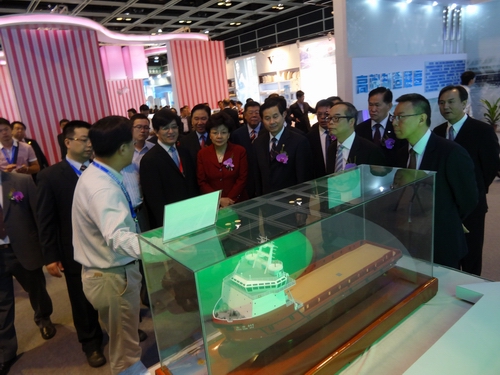 On 24th August 2013, our company, as a representative of high-end enterprises, attended Jiangsu Commodites Trade Fair in Hong Kong. During the two-day fair, the product models of ocean engineering vessels from Zhenjiang Shipyard, with their perfect performance, attracted many groups’ and clients’ attention like HongKong General Chamber of Commerce and Holly International Group (HK), etc. |