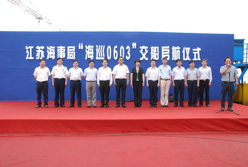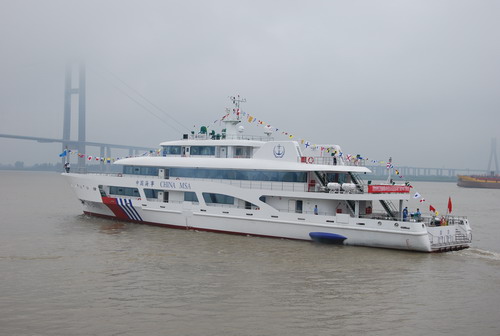 On the morning of 26th June 2014, the biggest emergency command vessel coast guard 0603 in Changjiang River, built for Jiangsu Marine Bureau was delivered from Zhenjiang Shipyard, starting its sail smoothly. The vessel will work in Changjiang River for Jiangsu area to command significant traffic and pollution accidents, dispatch important marine projects and activities and organize marine traffic. |
