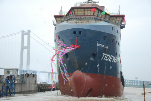 On 17th September 2014, the fourth Blue Drive Plus C ocean oil platform supply vessel of the six sister vessels, built for Tidewater Co., Ltd. USA, was successfully launched in the builder’s place, Zhenjiang Shipyard.