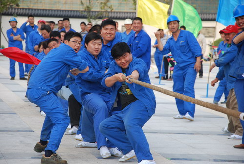 On May 25th, 2015, the 64th anniversary day of Zhenjiang Shipyard, members from the shipyard’s Party Committee, Labor Union and Youth League Committee jointly held the 23th Tug of War in the yard. 11 teams from different departments and subcontractors in the yard attended the competition. The yard’s machinery workshop team finally got the first prize of Civilized Trophy. Ship-owner representatives and shipyard leaders attended the ceremony and awarded the winner. During the intervals of the competition, some employees performed square dancing, aerobic exercises and Taiji Kung-fu Fan as entertainment.