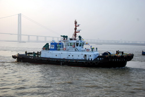 On the afternoon of December 31,2015,the 2×1940kW ASD tugboats “l(fā)iangang 8”,“l(fā)iangang 9”were delivered to DaLian Port (PDA) Company Limited from Jiangsu Zhenjiang Shipyard (Group) Co., Ltd,starting its sail smoothly. |