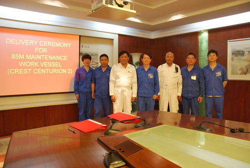 In the morning of 15th June 2016, another 85m Maintenance Work Vessel named CREST CENTURION 2 which is representing international advanced level in the world market had been conducted the delivery and acceptance ceremony in Zhenjiang Shipyard. This is the 3rd unit of 85m platform support vessel which was successfully delivered within one month. So far, Zhenjiang Shipyard had been successfully delivered all the series and various ocean engineering vessels since the Financial Crisis Broke Out at 2008. |
