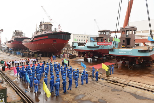 【LAUNCHING】 WORK BOAT AND TUG BOAT OF FIJI OCEAN MINING PROJECT SUCCESSFULLY LAUNCHING