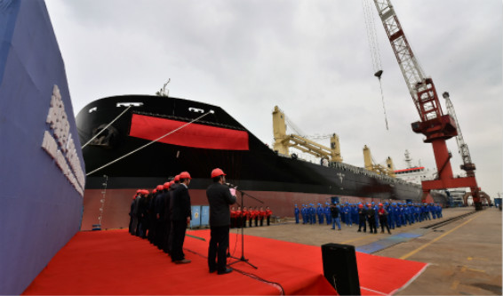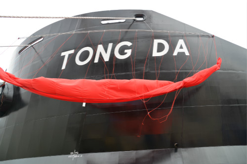 The second sea camel type 48500DWT heavy lift general cargo carrier “TONG DA” which was funded jointly by SUMEC MARINE CO.,LTD and Topsheen Shipping Group Limited has been named and delivered successfully in Jiangsu Zhenjiang Shipyard (Group) Co.,LTD in the morning of March 16th, 2018. |