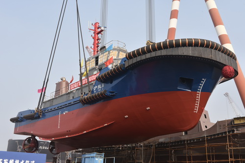 【News】Zhenjiang Shipyard did a successful lifiting launching for a 2942kW ASD tugboat