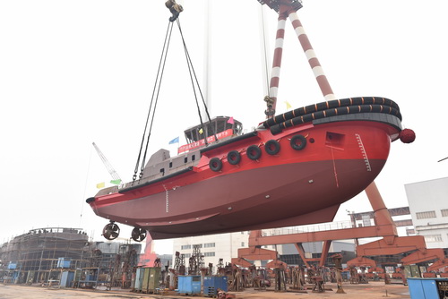 On January 8th 2019, our company completed two production nodes on the day. The two 2354kW ASD tugboat we built for Tianjin Port tug&barge Co.,Ltd were launched successfully. And the 4650DWT class cargo ship we built for Korea shipowner got keel laying. |