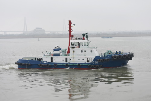 On morning of Feb. 22nd, 2019, one unit of 2×1471kW ASD tugboat---"HU TUO 8" was fully completed and smoothly delivered built by Jiangsu Zhenjiang Shipyard (Group) Co., Ltd to Shanghai Dayu Ltd.