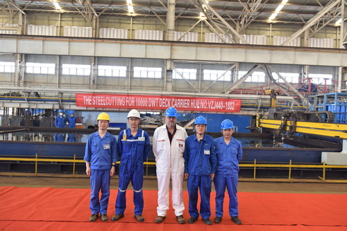 On the morning of May 20, 2019, the Steel Cutting was carried out for the Second of 10,000DWT Electric Propulsion Deck Carrier under the batch construction in our company for Germany ship owner. |