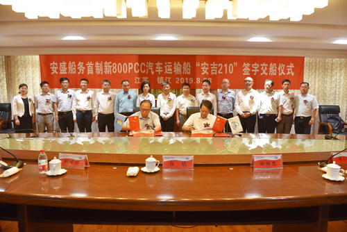 In the morning of August 28th 2019,the new 800PCC car ro-ro ship 1# was signed delivery and 2# ship was launched by our shipyard, which we built for Shanghai Ansheng Automotive Shipping Co.,Ltd. |