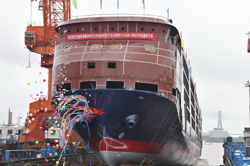 【News】 Our company's new 800PCC car roll-on - roll carrier 1# ship signed delivery and 2# ship successfully launched.