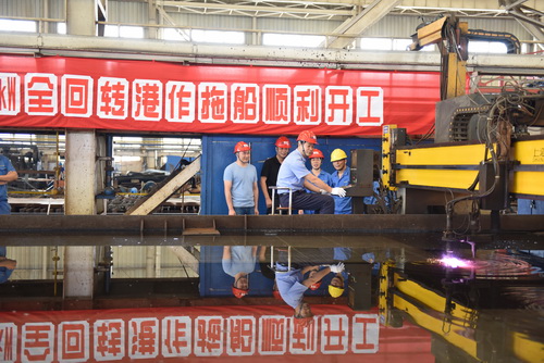 【Steel Cutting】Our company successfully carried out the steel cutting ceremony for 3680kW towing tug