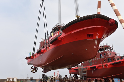 【Launching】Launching for two units of ASD tugboat with FIFI