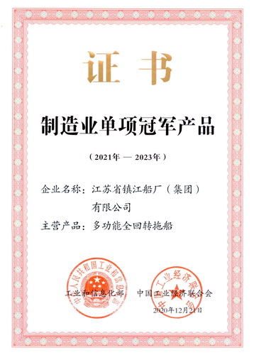 Recently, a new list for single champion products in industry was released by Ministry of industry and information technology and Chinese industrial economy union. Multi-functional ASD Tugboat built by our company was put in this list and honored as “Single Champion Product in Chinese Industry”.