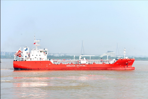 The vessel of CCS class has the length of 97m, breadth of 15.8m, depth of 7.8m, speed of 12kn and equipped with two independent sulfur tanks, loading capacity reaching 2,352m3, transporting capacity of 4,066DWT and with advanced thermal oil heating system, carrying sulfur 150°C. It is an international level chemical transporting vessel. Building the vessel symbols to stand on the front rank in market segment of domestic sulfur tankers.