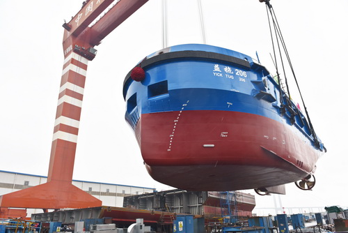 2020年1月16日,我公司為中遠海運散貨運輸有限公司參與的“一帶一路”重大建設項目而批量建造的系列工作船第10艘——“益拖206”順利吊裝下水。 |