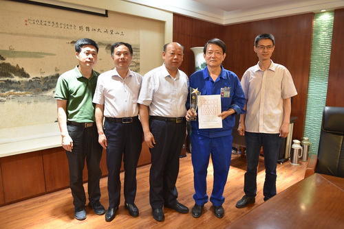 2020年5月27日上午,鎮(zhèn)江市市場監(jiān)督管理局吳圣濤副局長一行來到我公司,將鎮(zhèn)江市“誠信標(biāo)兵”獎杯授予郭琰董事長。 |