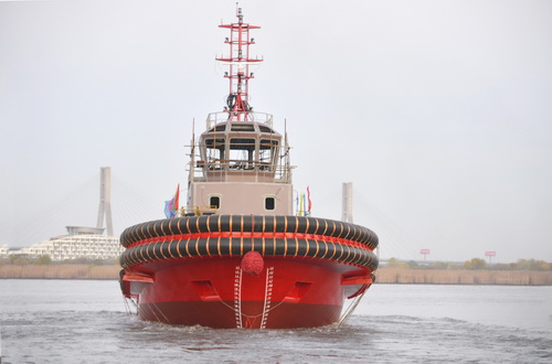 【下水】我公司5600馬力全回轉(zhuǎn)拖輪順利下水