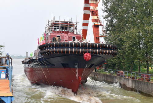 【下水】我公司5200HP全回轉(zhuǎn)拖船(帶消防和污油回收)順利下水