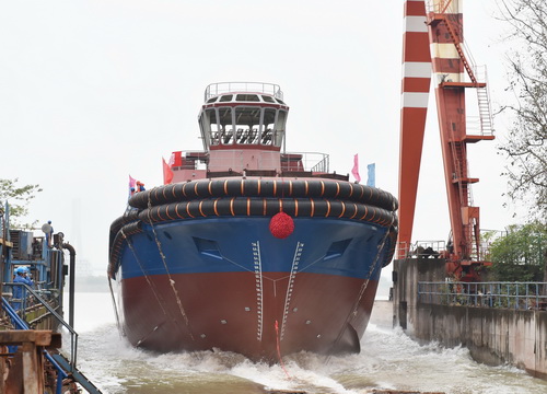 【下水】我國具備尾氣處理能力的最大功率全回轉(zhuǎn)拖船順利下水