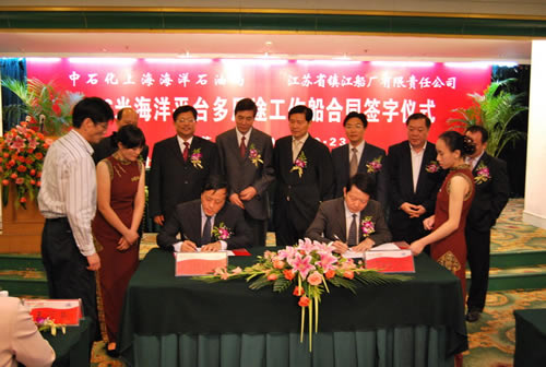 【新船簽約】76米海洋平臺多用途工作船08年10月30日,我公司與中石化上海海洋石油局就建造76米海洋平臺多用途工作船正式簽約。