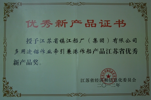 近日,由江蘇省鎮(zhèn)江船廠(chǎng)(集團(tuán))有限公司研發(fā)建造的“多用途錨作業(yè)牽引兼港作船”經(jīng)江蘇省經(jīng)濟(jì)和信息化委員會(huì)評(píng)選,榮獲2012年江蘇省優(yōu)秀新產(chǎn)品獎(jiǎng)。 |