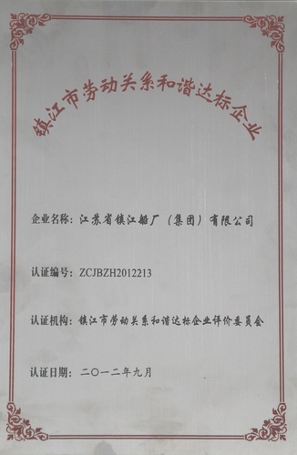 近日,在鎮(zhèn)江市委工會(huì)工作會(huì)議上,江蘇省鎮(zhèn)江船廠(集團(tuán))有限公司被命名為首批“鎮(zhèn)江市勞動(dòng)關(guān)系和諧達(dá)標(biāo)企業(yè)”。 |