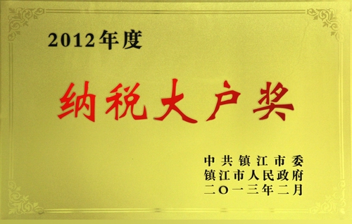 【新聞】我公司被授予2012年度鎮(zhèn)江市“納稅大戶(hù)獎(jiǎng)”