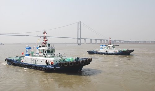 2013年3月8日下午,由江蘇省鎮(zhèn)江船廠(集團)有限公司為青島港設(shè)計建造的2艘8200HP全回轉(zhuǎn)港作工程船,在鎮(zhèn)江船廠完工出廠,交付船東。這是目前亞洲功率最大,配置最先進的全回轉(zhuǎn)港作工程船舶,船舶性能完全可以滿足包括航母在內(nèi)的特大型船舶的助泊需求,業(yè)內(nèi)人士認為,這標志著我國全回轉(zhuǎn)港作工程船船的設(shè)計建造水平及其助泊能力進入了一個新時代。據(jù)悉,這兩艘船即將配套青島港董家口新港區(qū)40萬噸礦石碼頭,為第六代集裝箱船等特大型船舶提供港作服務(wù)。 |