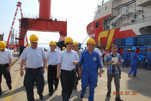 2013年7月30日下午,鎮(zhèn)江市委書記楊省世在市委常委、秘書長李雪峰,市人大副主任、市總工會主席陳蘇,市政協(xié)副主席、市公安局局長夏新平,市委副秘書長丁羽如,潤州區(qū)委書記王冬生等領(lǐng)導(dǎo)的陪同下,帶著防暑降溫用品蒞臨我廠慰問高溫生產(chǎn)一線職工。 |