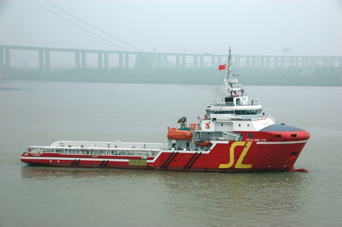 2013年9月12日上午,由江蘇省鎮(zhèn)江船廠(集團)有限公司為馬來西亞船東批量建造的第2艘84.8M柴電混合動力推進多用途起錨供應船順利出廠。 |