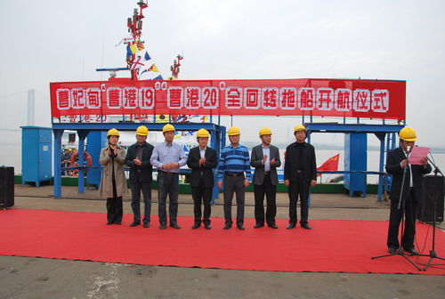 2013年10月29日下午,由江蘇省鎮(zhèn)江船廠(集團(tuán))有限公司為唐山港曹妃甸拖船有限公司建造的兩艘全回轉(zhuǎn)拖船——“曹港19”、“曹港20”,在鎮(zhèn)江船廠完工出廠,順利啟航。唐山曹妃甸實(shí)業(yè)港務(wù)有限公司孫紅總經(jīng)理、唐山港曹妃甸拖船有限公司侯守柱總經(jīng)理等領(lǐng)導(dǎo)和來賓專程赴鎮(zhèn)江船廠參加了開航儀式。 |