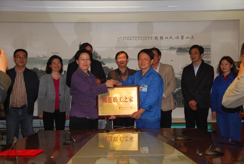 2014年5月4日,江蘇省人大常委、省總工會主席、黨組書記邢春寧在鎮(zhèn)江市人大副主任陳蘇,鎮(zhèn)江市副市長曹麗虹,鎮(zhèn)江市政協(xié)黨組成員、市總工會主席王榮正等領(lǐng)導(dǎo)的陪同下蒞臨我公司視察調(diào)研,并代表全總授予我公司工會“全國模范職工之家”稱號。 |