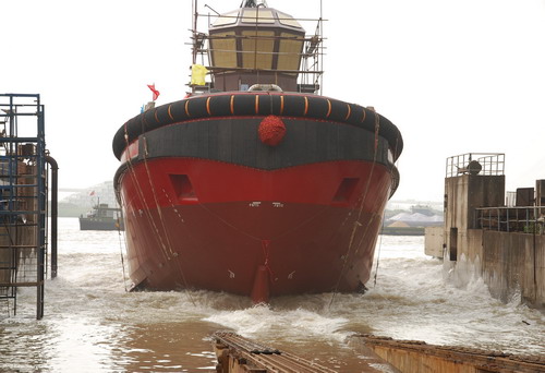 2014年5月26日,由我司批量化建造的3300AV(33米)全回轉(zhuǎn)拖船AV001#、AV002#順利下水。