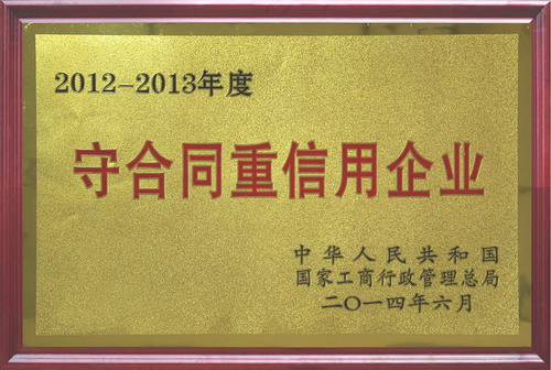 近日,從鎮(zhèn)江市工商部門獲悉,企業(yè)集團(tuán)公司被國家工商行政管理總局授予“2012—2013年度守合同重信用企業(yè)”榮譽(yù)稱號。 |
