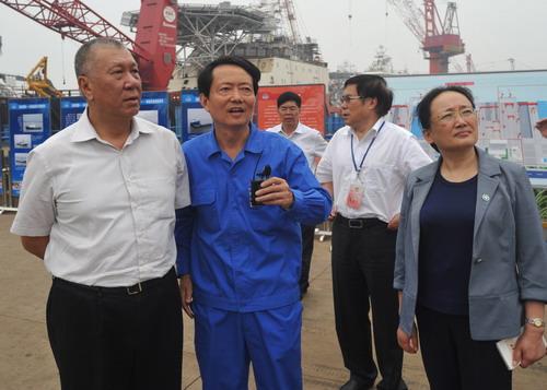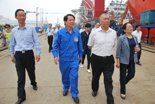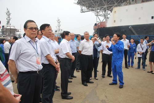 何厚鏵一行聽取了集團(tuán)公司董事長、總經(jīng)理郭琰關(guān)于企業(yè)生產(chǎn)現(xiàn)狀、發(fā)展規(guī)劃,科技創(chuàng)新以及代表性產(chǎn)品等情況的匯報(bào),并深入到生產(chǎn)一線,在舾裝碼頭實(shí)地視察了代表當(dāng)代世界最先進(jìn)的電力推進(jìn)石油平臺(tái)支援船,亞洲第一艘LNG單燃料動(dòng)力全回轉(zhuǎn)工作船等在建船舶。何厚鏵對(duì)我公司轉(zhuǎn)型升級(jí)、科技創(chuàng)新,差異競爭、錯(cuò)位發(fā)展,提升核心競爭力的做法給予了高度評(píng)價(jià)。