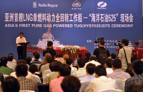 2015年7月3日,我公司為中海油建造的亞洲第一艘LNG單燃料動力全回轉(zhuǎn)工作船—“海洋石油525”完工交付現(xiàn)場會在鎮(zhèn)江舉行。來自中海油、羅爾斯-羅伊斯公司、上海佳豪船舶設(shè)計公司、交通部打撈局、全國40多家主要港口、中國船級社以及配套供應(yīng)商的代表100余人出席了現(xiàn)場會。 |