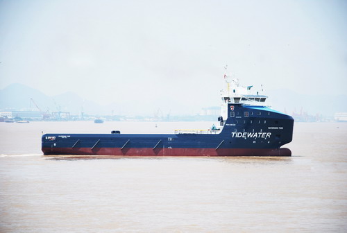 2015年7月28日上午,由我公司為美國潮水公司批量建造的第五艘直流電站電力推進PSV——“PATERSON TIDE”完工交付,順利啟航。 |