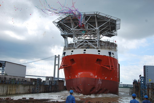 2015年8月11日下午,我公司為國(guó)外船東建造的又一艘具有國(guó)際先進(jìn)水平的85米維護(hù)工作船順利下水。 |
