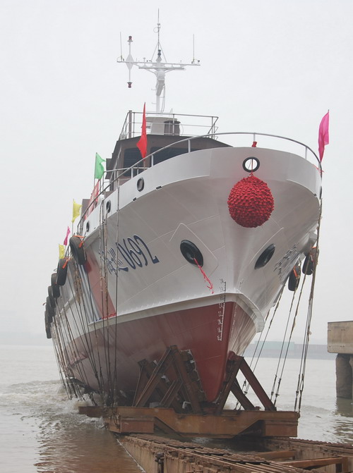 2016年3月18日下午,我公司為江蘇海事局建造的批量海巡船首船順利下水。 |