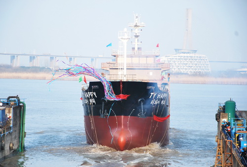 (圖1 3700DWT雜貨船下水儀式現(xiàn)場)