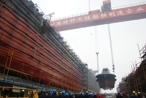 2017年1月19日上午,我公司為舟山市港興拖輪有限責任公司建造的5000hp全回轉拖船——“港興拖233”順利吊裝下水。 |