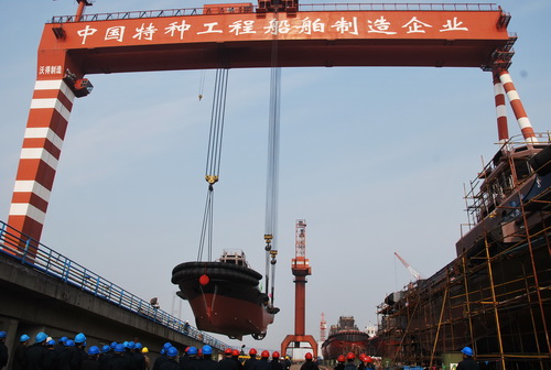 【新聞】我公司一天完成2船下水1船交付 2017年2月24日上午,我公司為國內(nèi)船東自主設(shè)計的兩艘3676kW全回轉(zhuǎn)拖船順利吊裝下水。