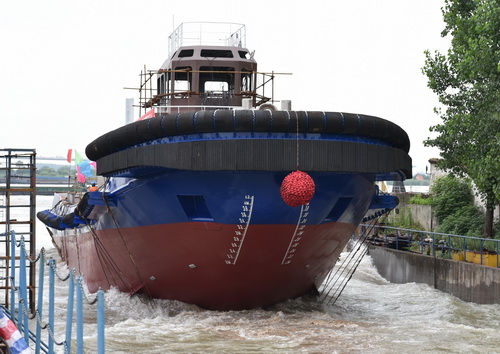 【下水】我公司又一艘5000PS全回轉(zhuǎn)順利下水