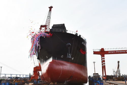 【下水】我公司建造的15000DWT自卸運煤船命名下水