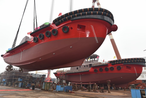2019年1月8日,我公司一天完成兩大生產(chǎn)節(jié)點。為天津港輪駁有限公司建造的2艘2354kW,符合智能機(jī)艙規(guī)范的智能型全回轉(zhuǎn)拖船順利吊裝下水;為韓國船東建造的4650DWT雜貨船上船臺。 |